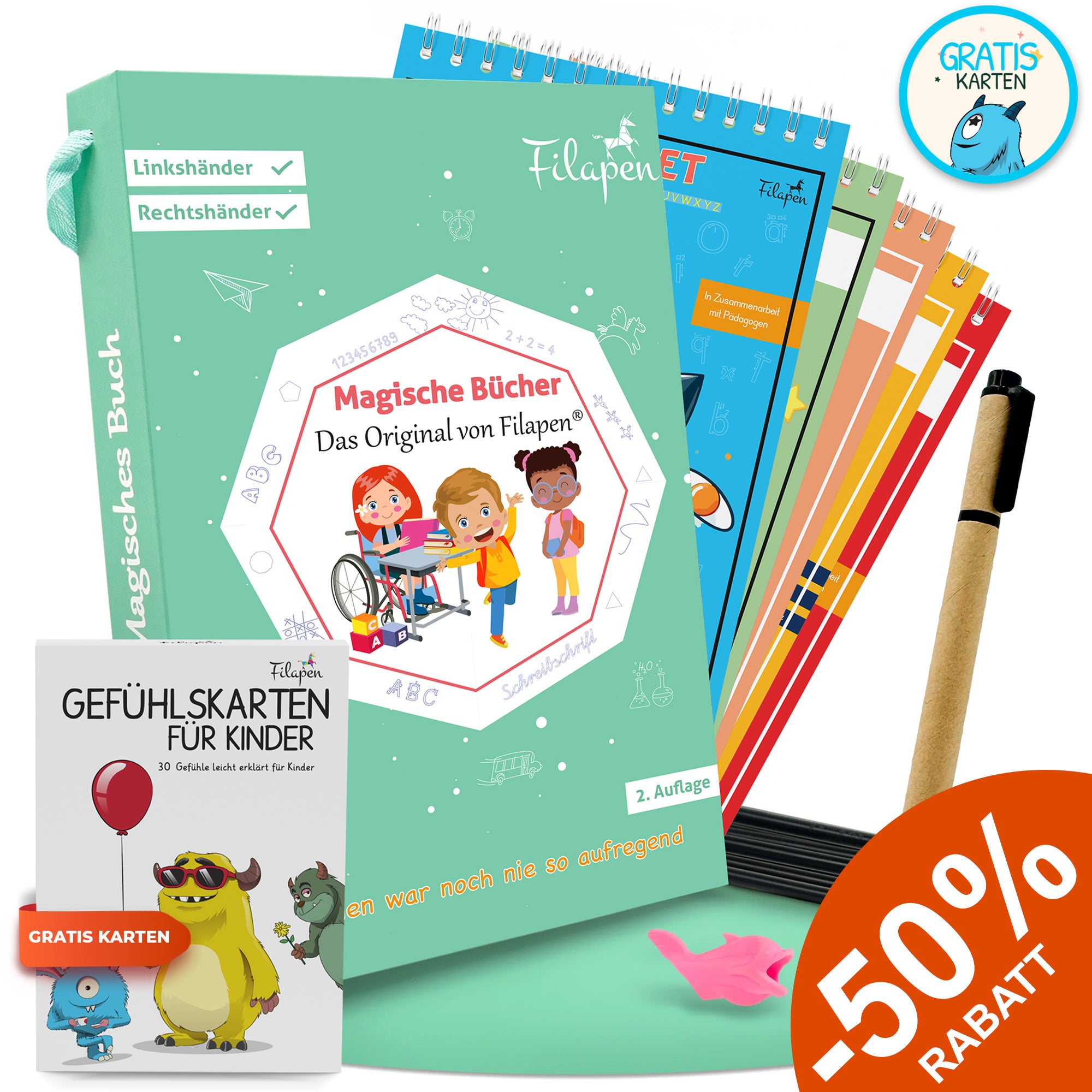 Die magischen Übungshefte von Filapen®. Wurden speziell für Vorschulkinder und Grundschüler entwickelt.